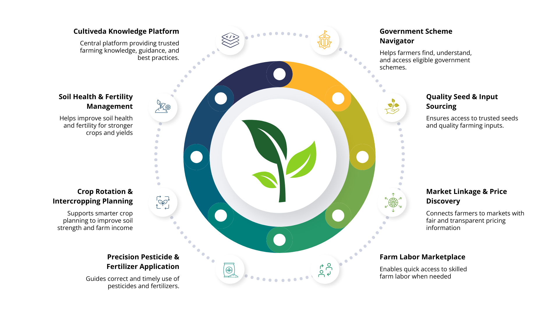 To equip 10 million Indian farmers with precise agronomic knowledge, government scheme access, and digital tools that enhance productivity, soil health, and farm profitability.